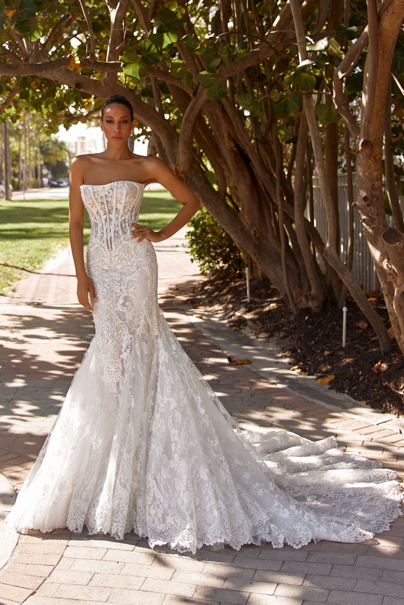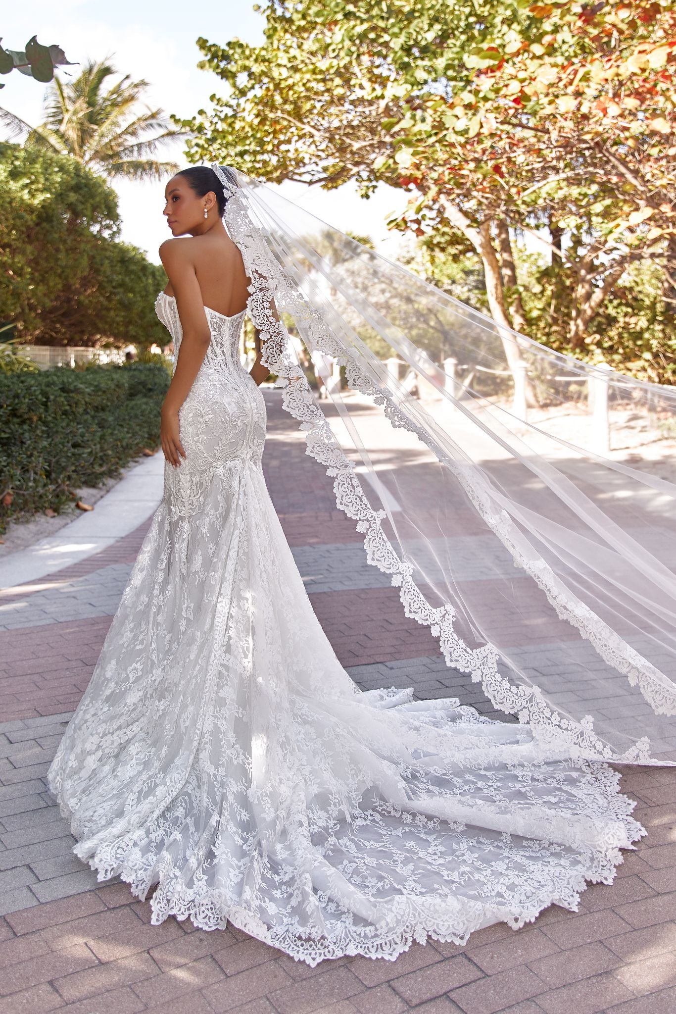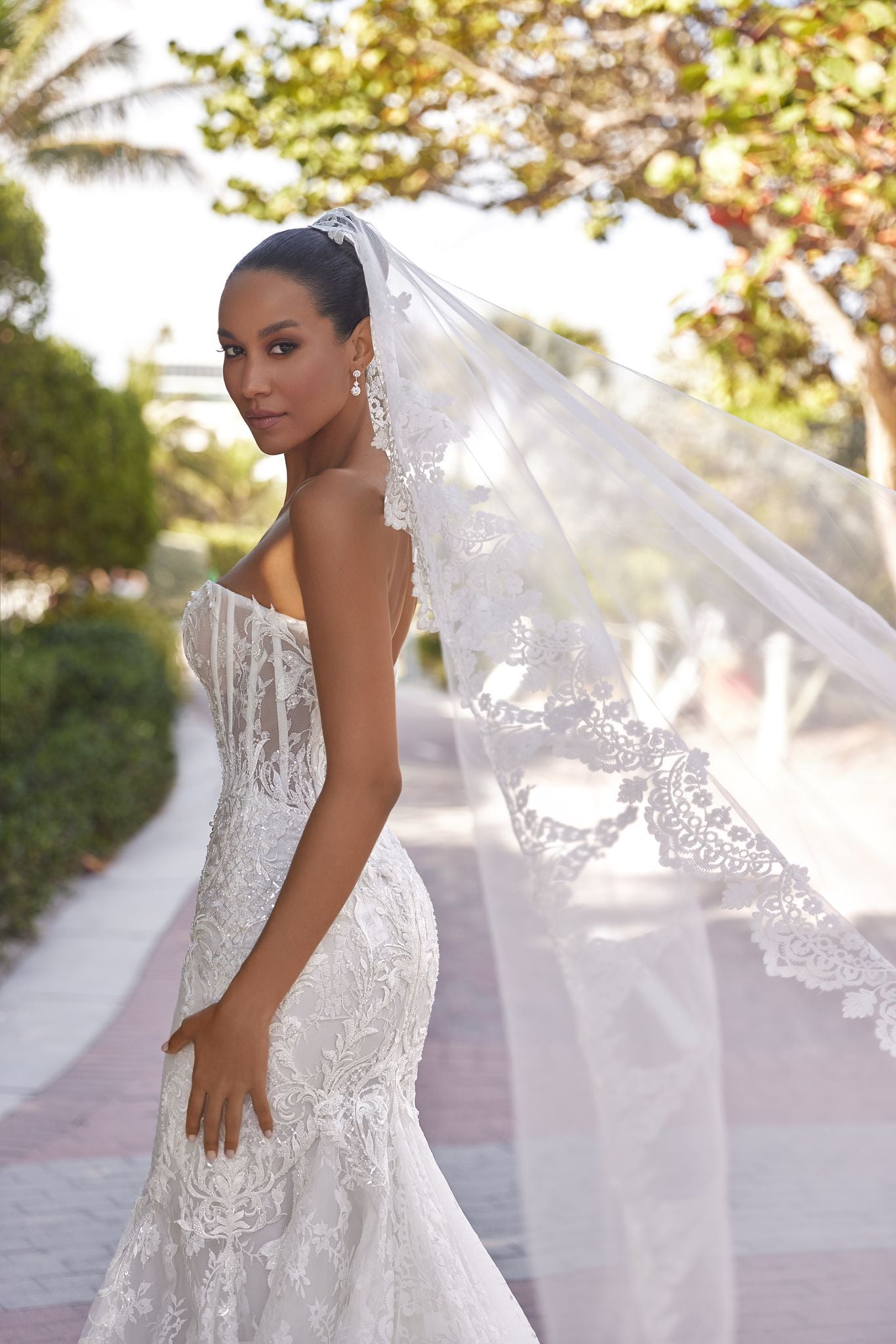Flowing into a dramatic lace train, AMORET is more than a wedding dress—it is a keepsake, designed for a life-changing moment and memories that will last forever.