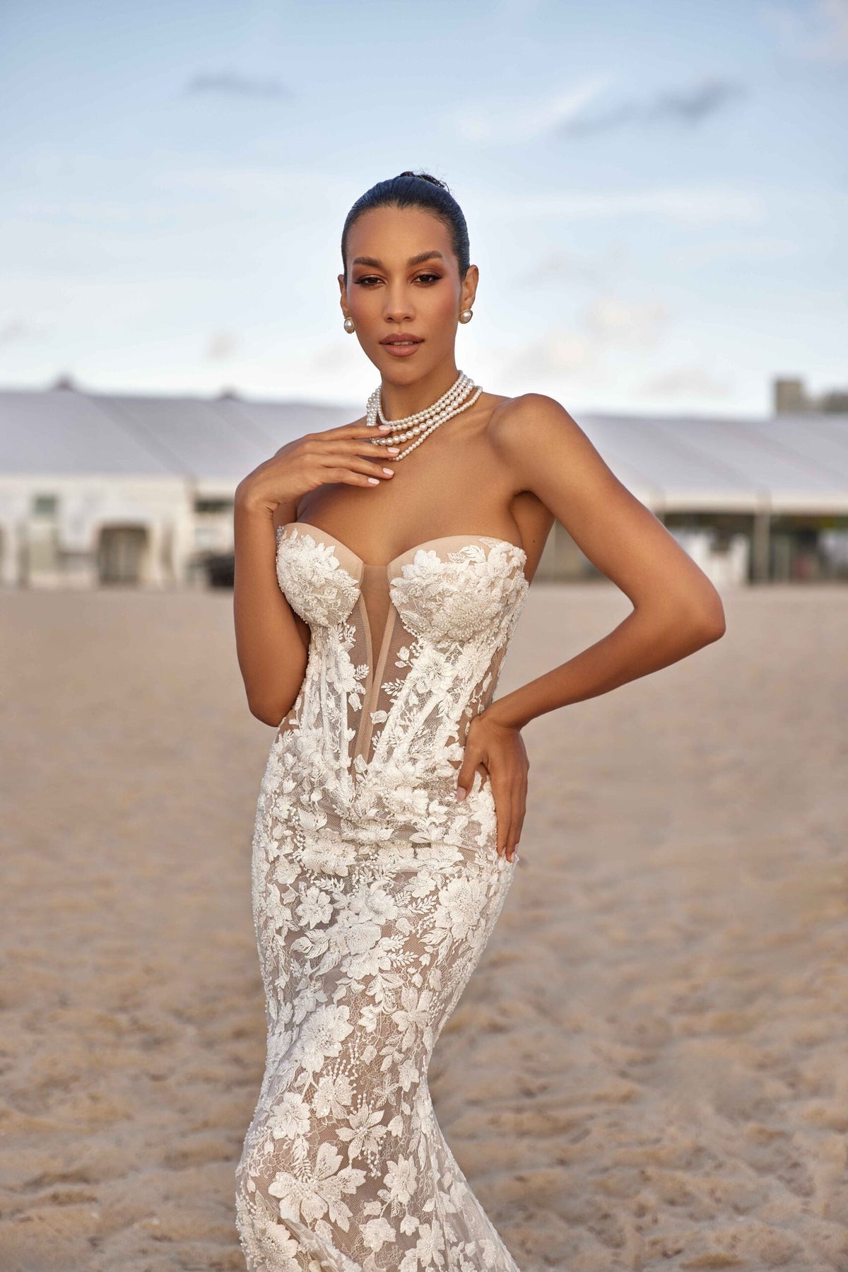 In a soft nude tone, ARDEN balances strength with softness, modernity with romance. This is elegance in motion—crafted for the bride who shines effortlessly and leaves a lasting impression.